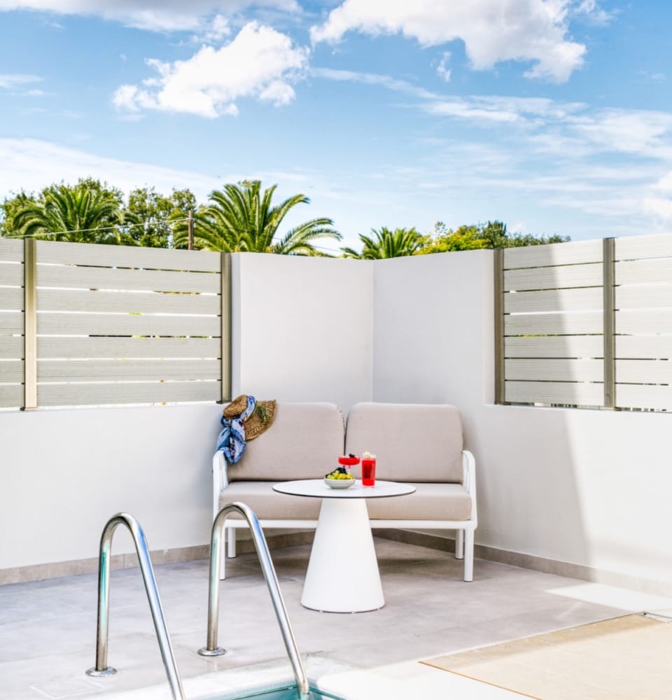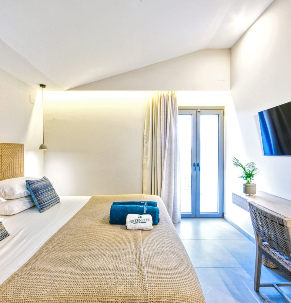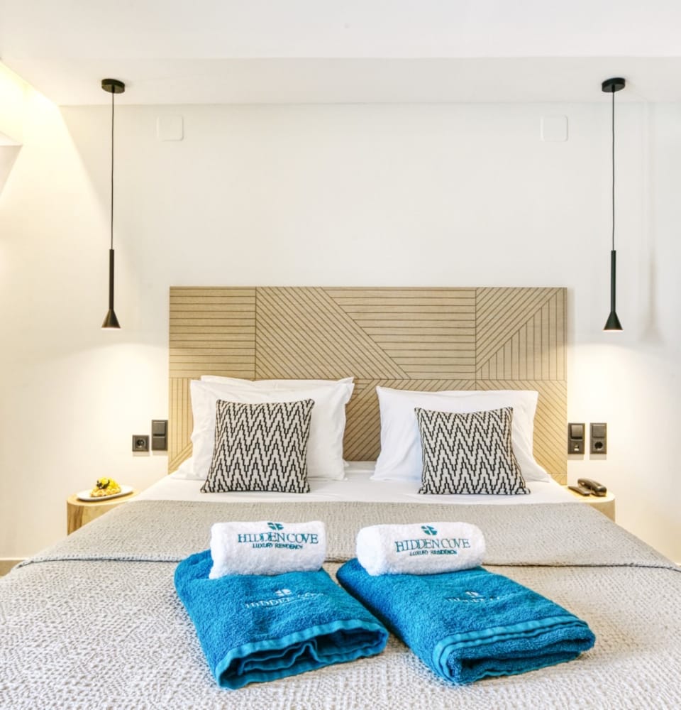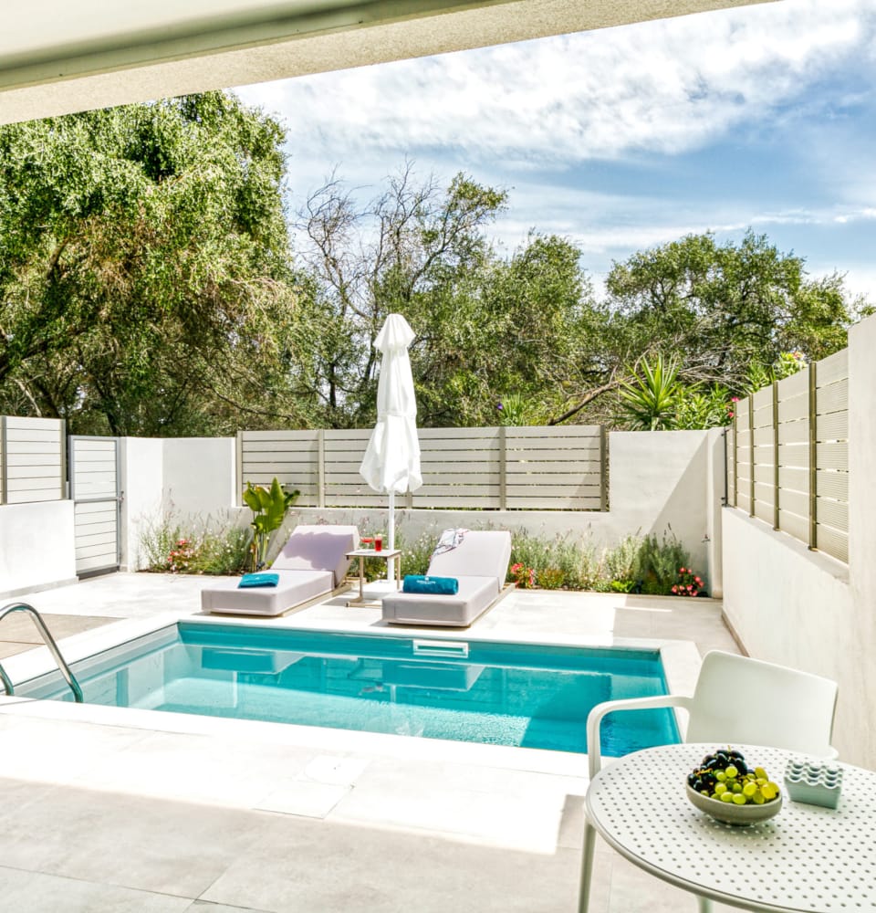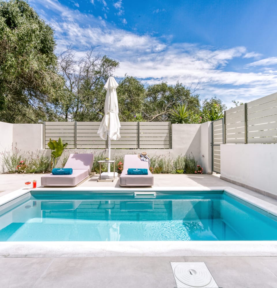 Combining chic boho style with a touch of luxury, Hidden Cove Luxury Residence in Corfu features a collection of spacious and stylish rooms and suites, some equipped with a private pool or outdoor hot tub, that offer breathtaking views of either the blue-green waters of the Ionian Sea or our lush garden.