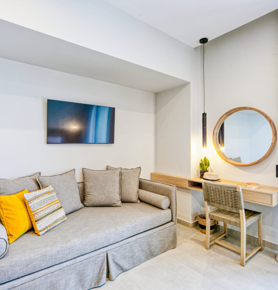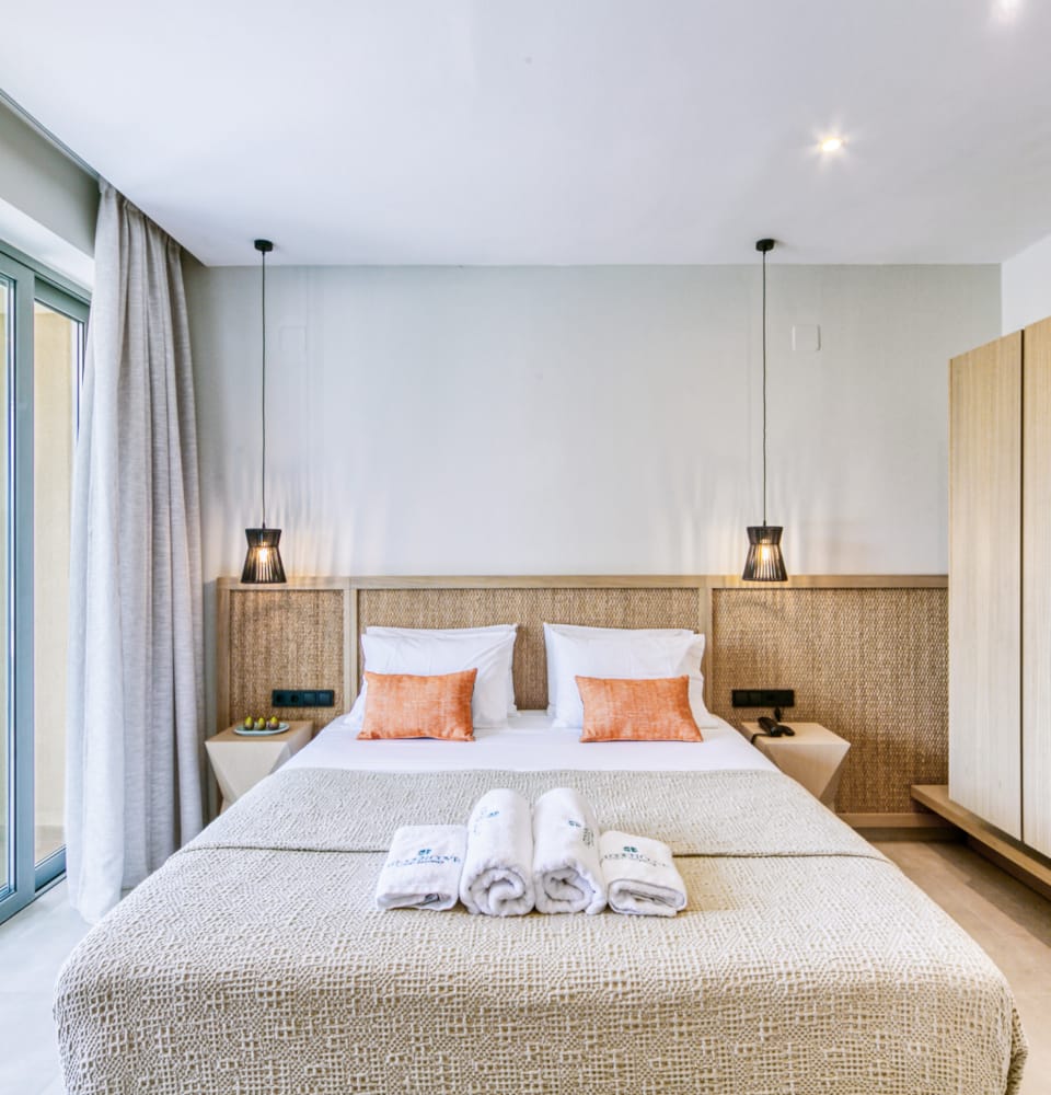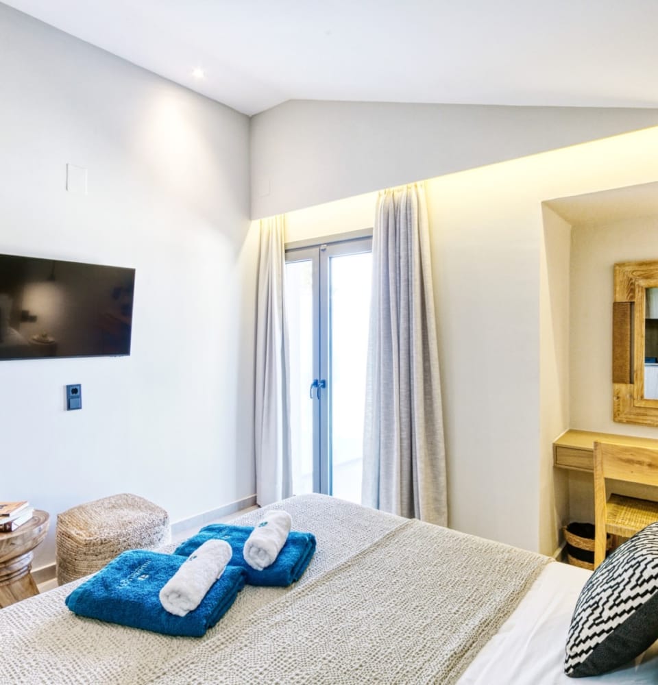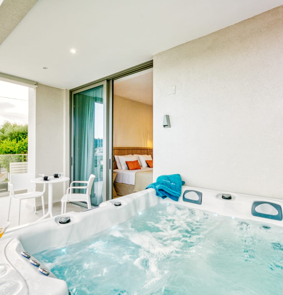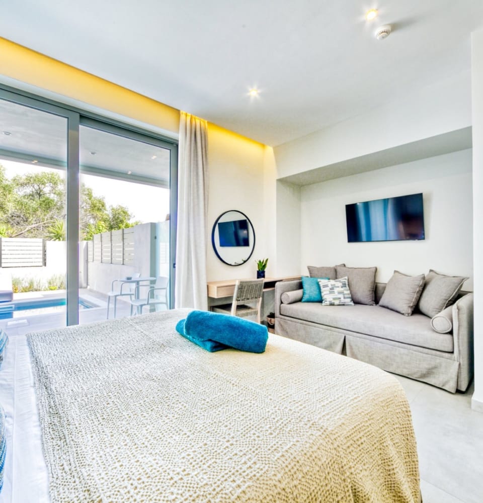 Combining chic boho style with a touch of luxury, Hidden Cove Luxury Residence in Corfu features a collection of spacious and stylish rooms and suites, some equipped with a private pool or outdoor hot tub, that offer breathtaking views of either the blue-green waters of the Ionian Sea or our lush garden.