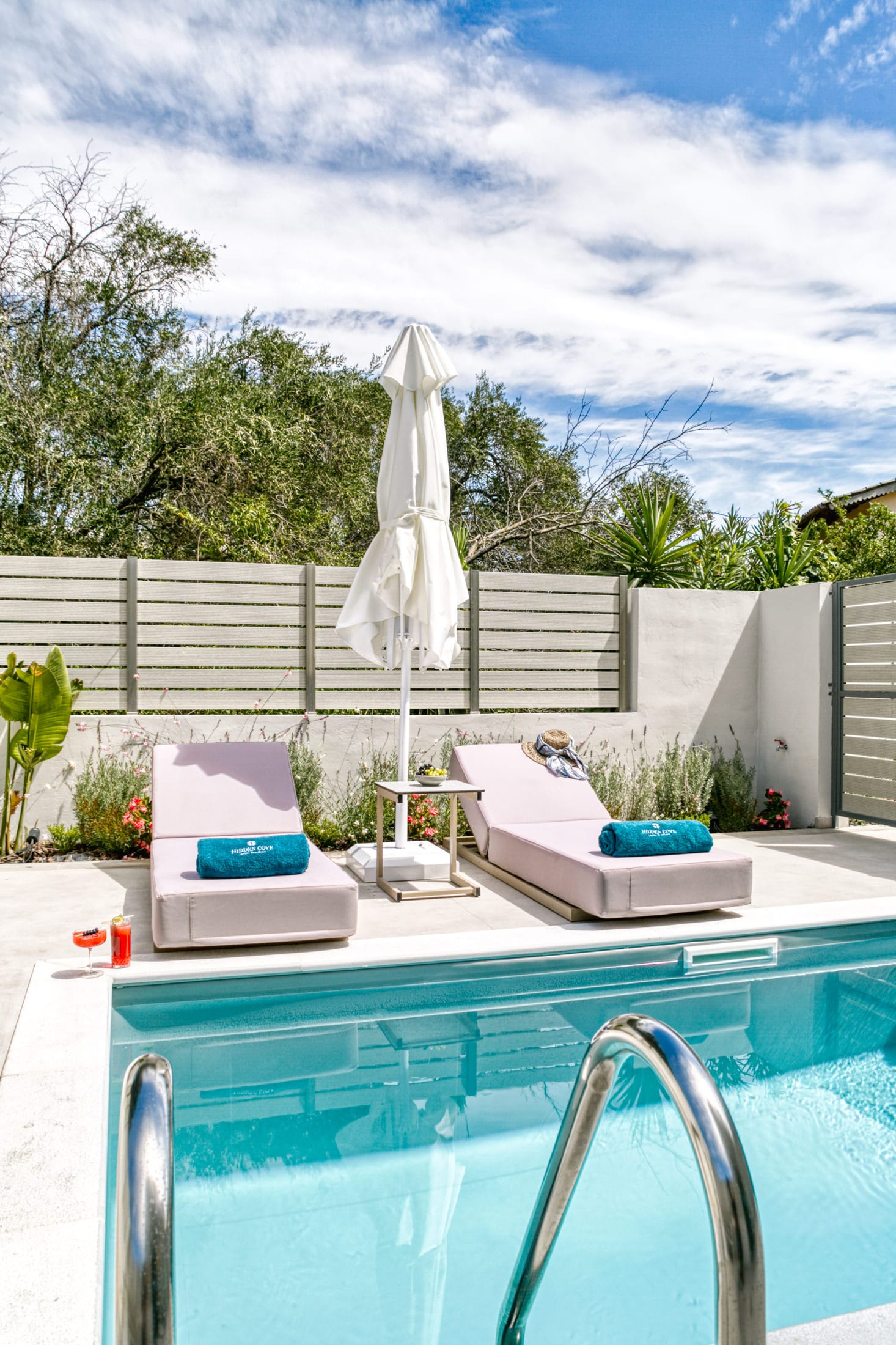 Συνδυάζοντας αρμονικά το boho chic στυλ με πινελιές προσιτής πολυτέλειας, το Hidden Cove Luxury Residence στην Κέρκυρα διαθέτει μια συλλογή από ευρύχωρα και κομψά δωμάτια και σουίτες, μερικά εξοπλισμένα με ιδιωτική πισίνα ή υδρομασάζ, που προσφέρουν εκπληκτική θέα είτε στα γαλαζοπράσινα νερά του Ιονίου ή τον καταπράσινο κήπο μας.